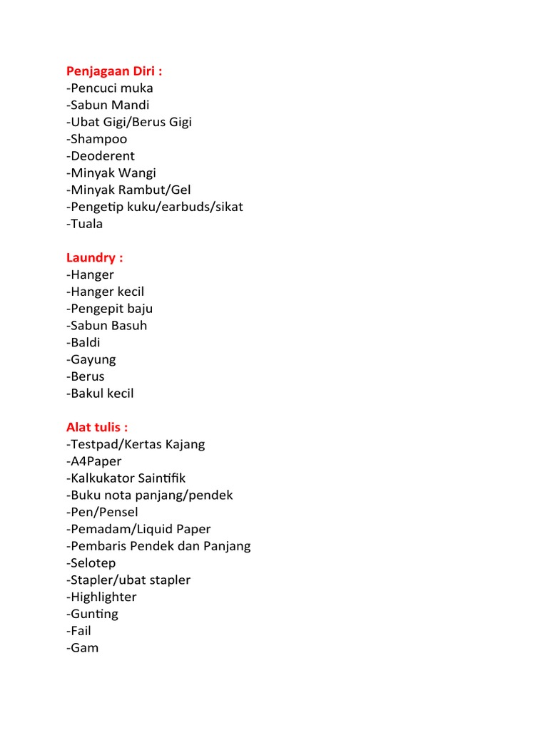 Senarai Barang Matrikulasi Pdf